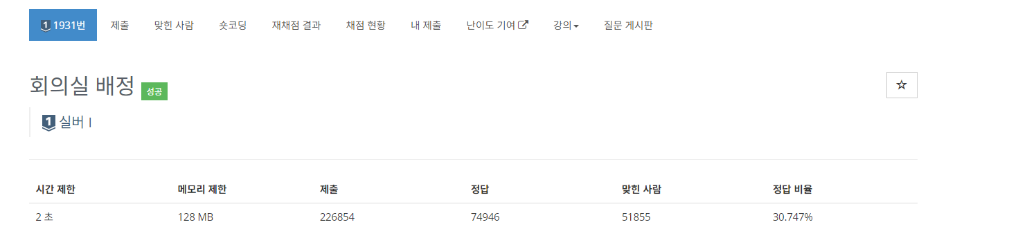 if(o1[1] == o2[1]) { //종료시간이 같을 경우 시작 시간이 빠른 순