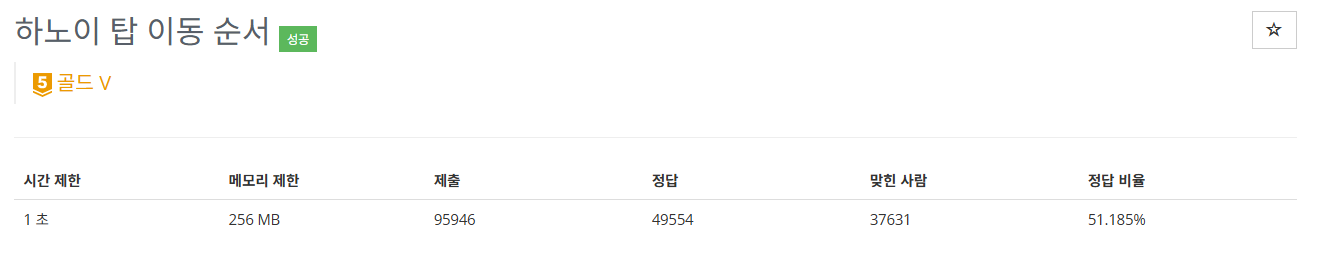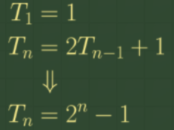 하노이 탑의 이동 횟수를 수학 공식으로 나타내면 다음과 같다.