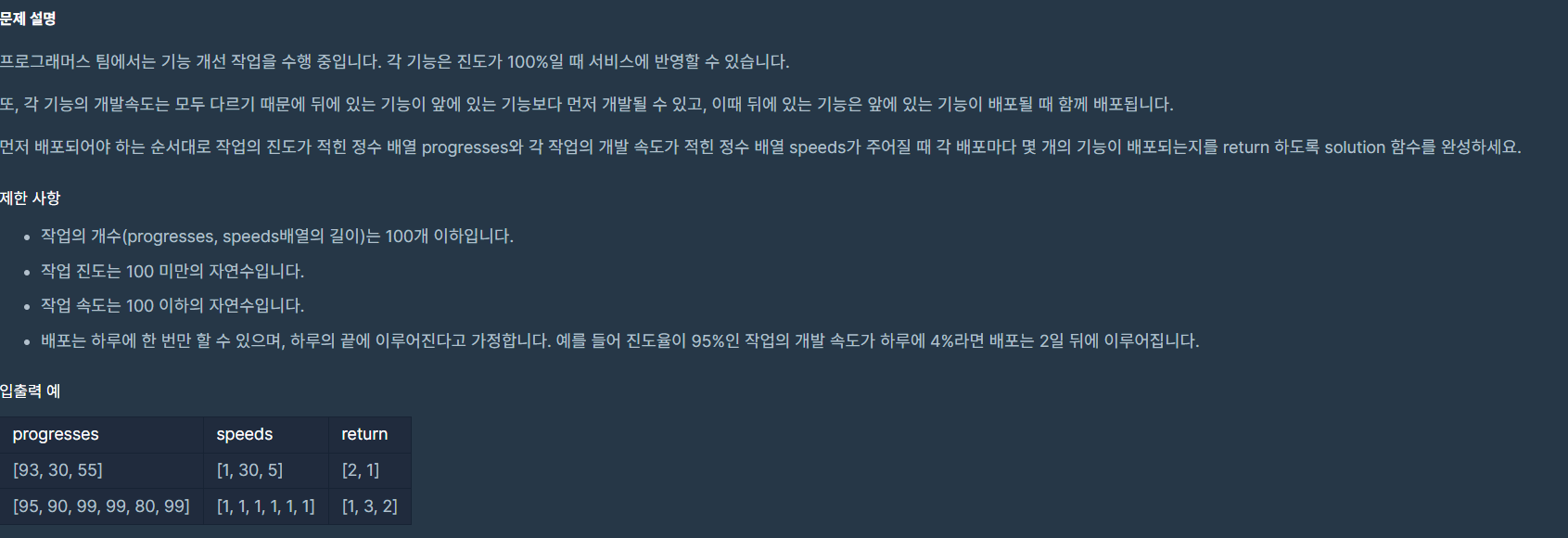 - head ==> 탐색을 시작할 위치(처음에는 head 변수 없이 이미 배포가 된 작업에 대해서도 체크를 해줘서 시간 초과가 발생하였다.)