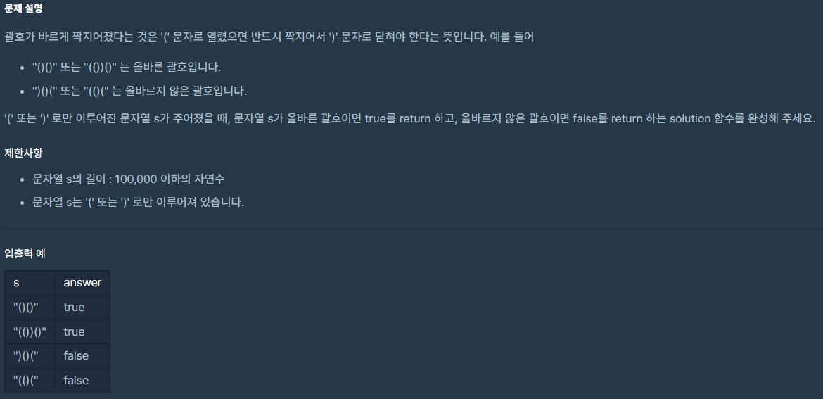 - 문자열 순회가 끝났을때 스택이 비어있으면 참, 스택이 비어있지 않으면 거짓 리턴