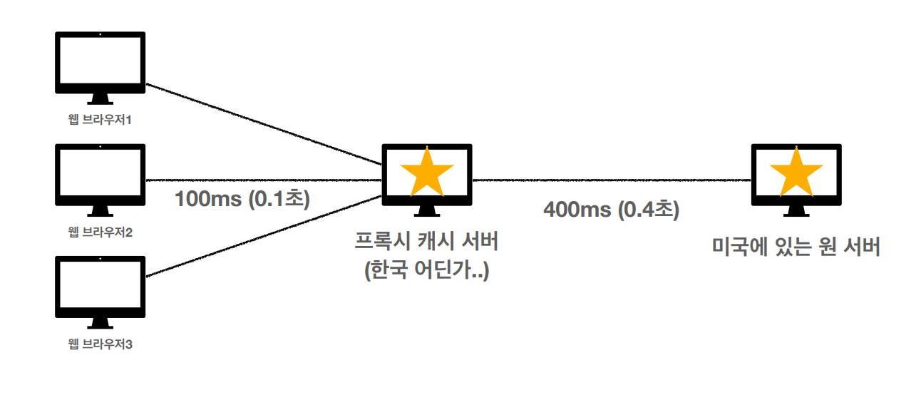한국에서 미국에 있는 원 서버와 통신을 하려고 하면 시간이 오래 걸린다.