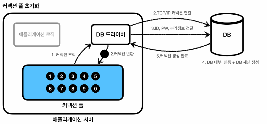 DB 드라이버는 필요한만큼 커넥션을 미리 생성하여 풀에 보관한다.