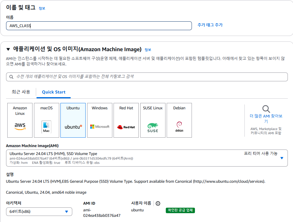 하지만 이번 배포는 학습용으로 가벼운 프로그램을 배포하므로 t2.micro(프리티어) 선택!