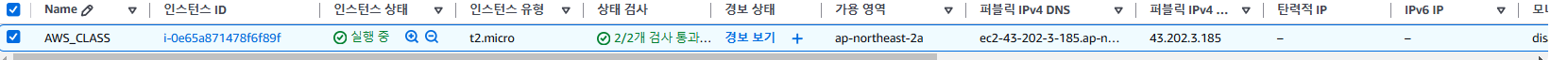 이렇게 생성된 인스턴스를 잠깐 중지시켰다가 다시 실행하면 IP가 바뀌어 있는것을 확인 가능하다.