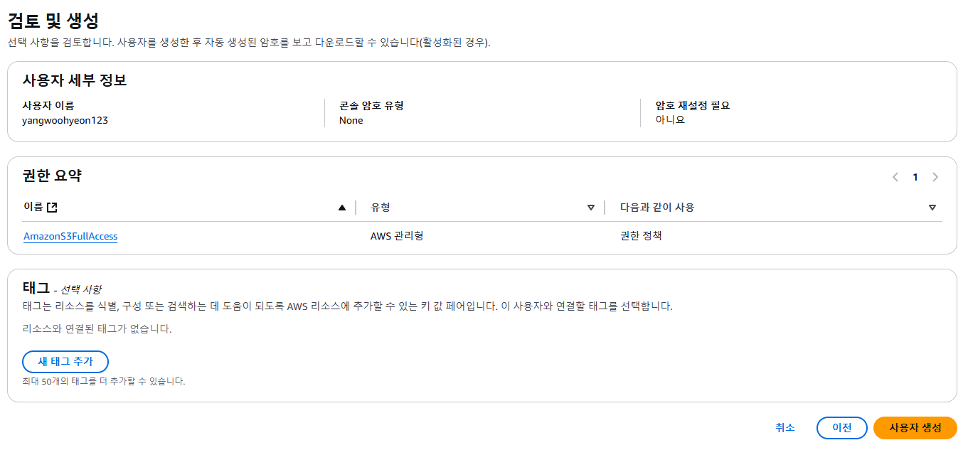 3. S3에 파일 업로드 할 수 있도록 IAM에서 액세스 키 발급받기