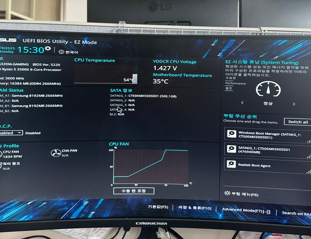 1. 컴퓨터 부팅시 F2를 눌러서 BIOS 모드로 진입