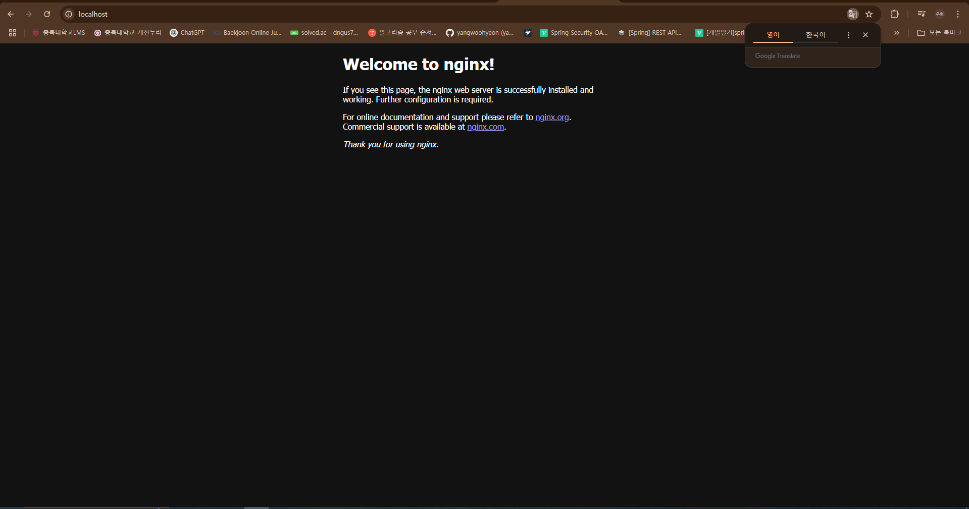 2. 도커 이미지 목록을 확인하여 Nginx가 정삭적으로 다운로드 되었는지 확인