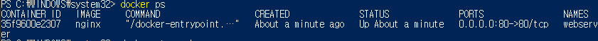3. nginx 웹 서버를 실행하는 컨테이너를 webserver라는 이름으로 백그라운드에서 실행하고, 내 컴퓨터의 80포트와 연결