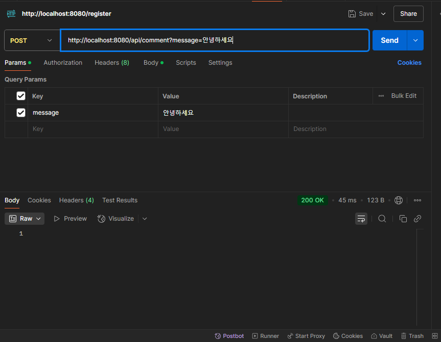 public ResponseEntity<Void> sendMessage(@RequestParam String message) {