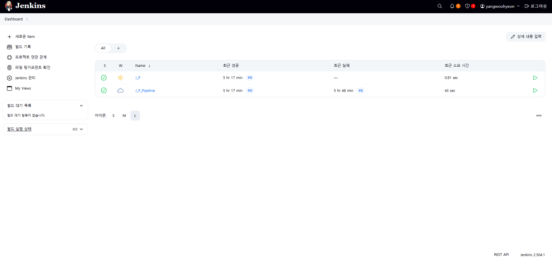 jenkins에 로그인을 하게 되면 다음과 같은 화면이 보이게 된다.