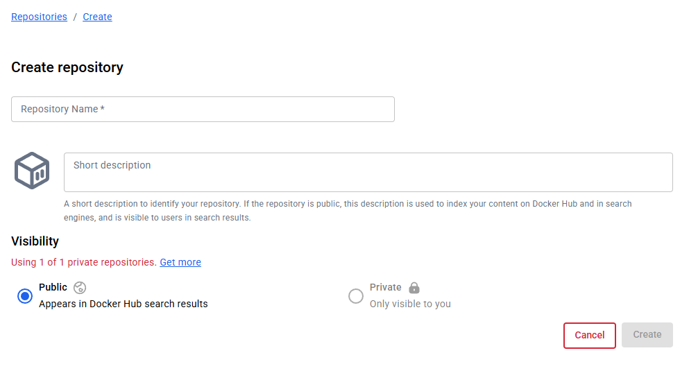 Jenkins에서 빌드된 Docker 이미지를 DockerHub에 등록하기 위해 DockerHub에 리포지토리를 생성해줘야 한다.