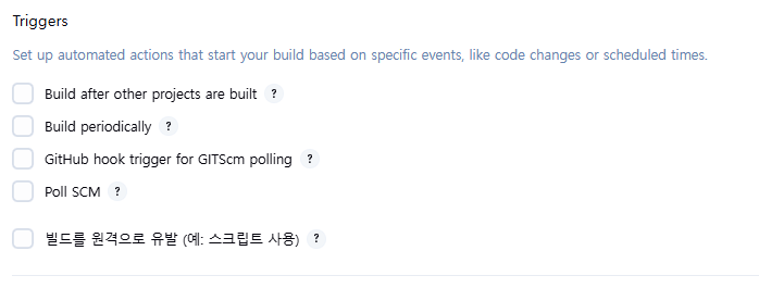 Triggers는 GitHub hook trigger for GITScm polling을 선택 해준다.