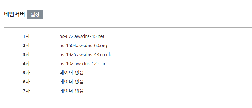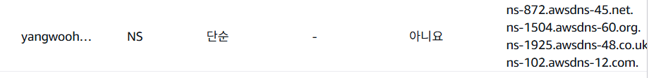 호스팅 영역을 생성해주면 아래 사진과 같은 화면이 보인다.