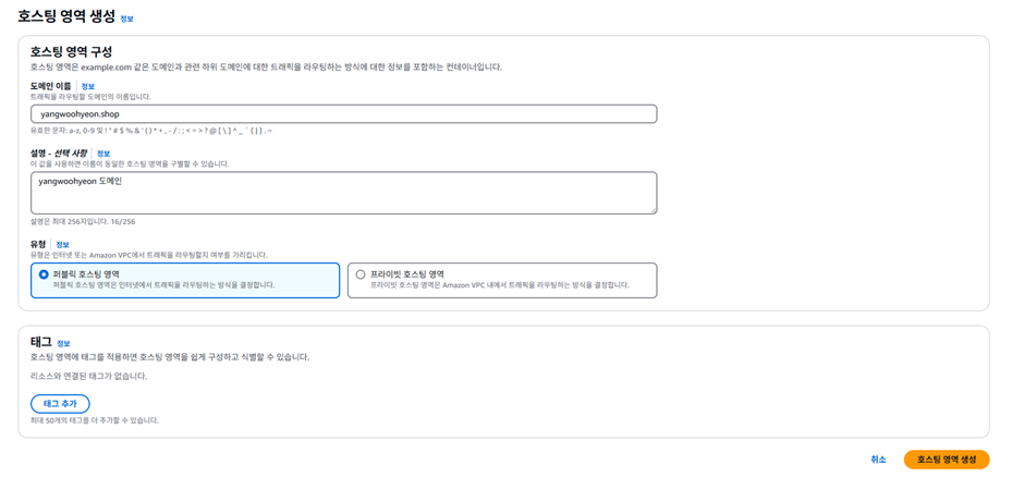 2. AWS Route53에서 DNS 관리 접속, 호스팅 영역 생성