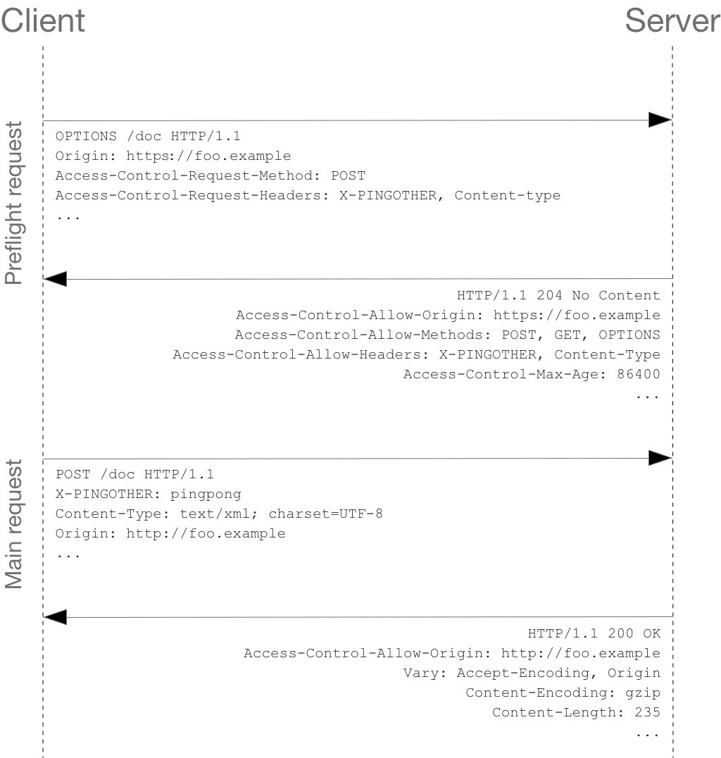 Preflight 요청이 성공하면 Client에서 Main Request(본 요청)을 보내게 된다.