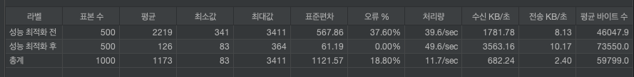 - 응답 속도 : 약 17.6배 개선