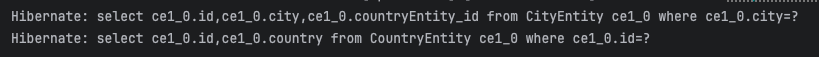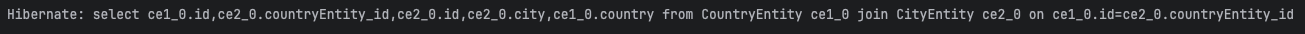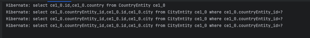 Hibernate: select ce1_0.countryEntity_id,ce1_0.id,ce1_0.city from CityEntity ce1_0 where ce1_0.countryEntity_id in (?......?)