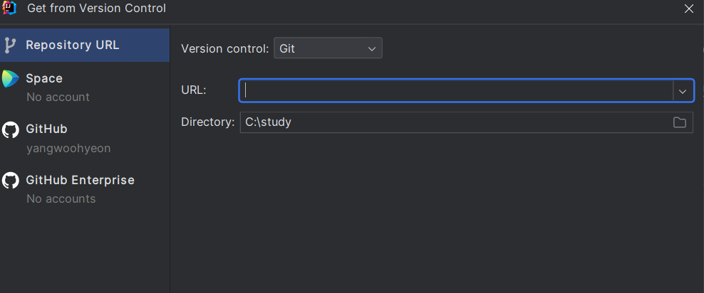 2) intellij에서 생성한 리포지토리 URL을 이용해서 불러오기