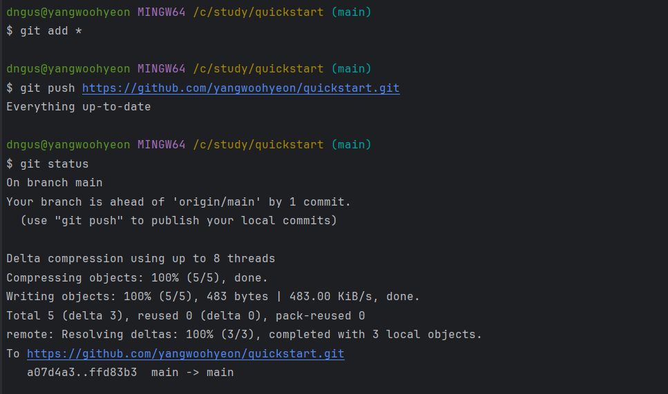 4 - git push (리포지토리 URL 주소)