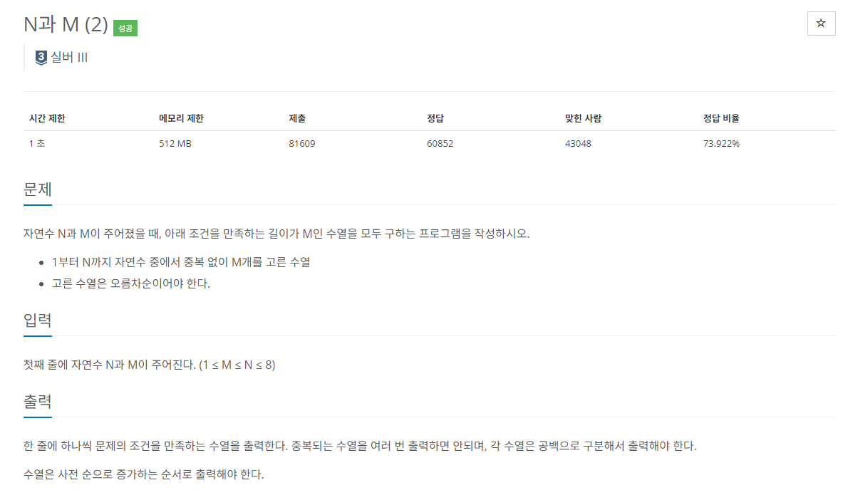처음에는 어렵게 느껴질 수 있지만 N과M(1)보다 간단한 문제이다.
