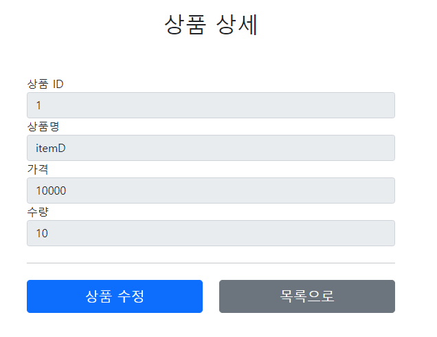 상품 수정 폼에서 저장 버튼을 누르면 상품 수정이 완료되고, 취소 버튼을 누르면 다시 상품 상세 폼으로 돌아오게 하기