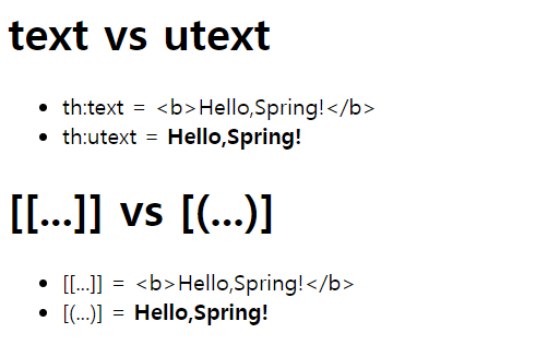 <h1><span th:inline="none">[[...]] vs [(...)]</span></h1>